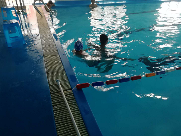 抵达演练场所(梓阳游泳中心)后,先由工作人员为学生提出安全方面的注意事项,然后由教练带领学生开始整个防溺水演练。所请教练为曾经浙江省队队员,一级运动员,冯立中;二级运动员,董国帅。