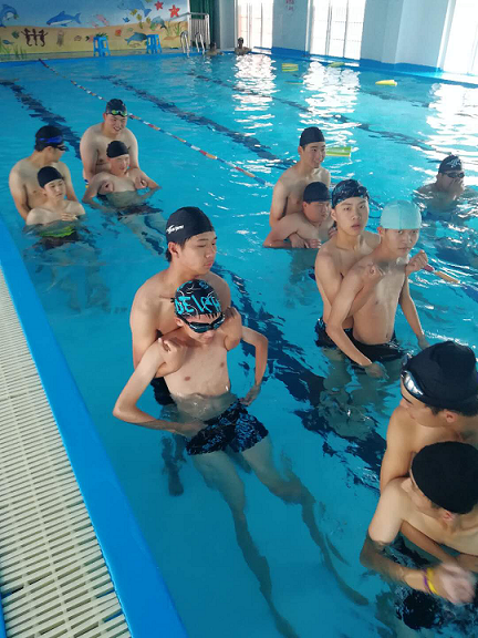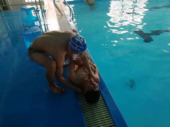 进行一些简单的游泳常识培训,尤其是水下憋气,如何避免呛水。然后开始溺水情景演练。