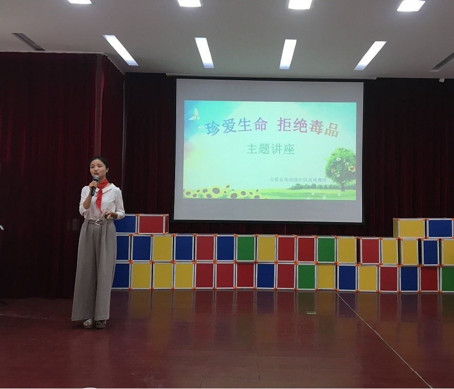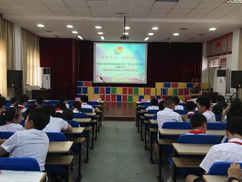 为增强青少年自我保护意识和能力,提高广大小学生对毒品危害知识和禁毒工作的了解,5月25日上午,团县委邀请安徽省南湖强制隔离戒毒所团委青年干警志愿者来我县进行毒品危害知识公共课宣讲活动,活动在旌阳一小举行。南湖强制隔离戒毒所毒品知识宣讲青年志愿者一行5人及全校师生代表100多人参加了活动。