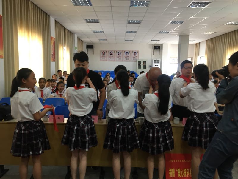 活动首先举行了“爱心报刊书籍”捐赠仪式。由南湖强制隔离戒毒所向旌阳一小捐赠了600册爱心书刊,学校少先队员代表向参加活动的青年干警志愿者们系上鲜红的红领巾,以示崇高的敬意。