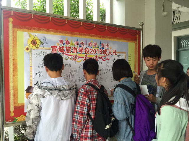 迈过成人门,在签名墙上留下浓墨重笔,记下这特殊的时刻。