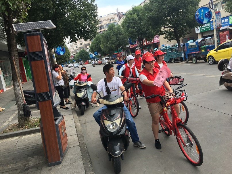 活动中志愿者们骑着“小红车”号召大家选择当下最流行的共享单车,鼓励乘坐公共交通工具或步行上下班,在享受便捷的同时让绿色出行的观念深入人心。同时向停放在路边的私家车主、机动车辆驾驶员等路人发放自制的《今天你低碳了吗》科普知识的宣传单,呼吁广大驾驶员和家庭成员积极参与到家庭节能降碳和建设美丽家园行动中来,身体力行传播绿色发展理念, 积极营造形成崇尚节俭、厉行节约的良好氛围。